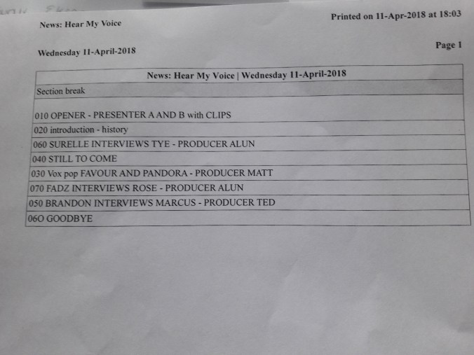 Brandon (camera operator): “I found it interesting seeing how to work in your role and help the show to progress. Now we have this #hearmespeak material made, we can broadcast it through our media.”